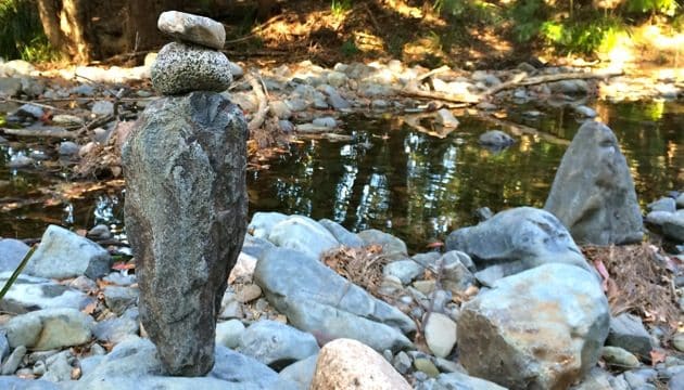 Interspersed among these creations are other naturally created ‘installations’ – a woven root, a cluster of fallen leaves, a rock pattern.