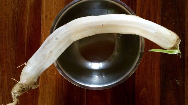 Here’s how I made a super simple vegan kim chi with this gifted daikon.