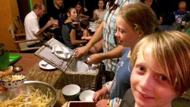 The kids have a great time too racing around together – tonight, getting absolutely soaked in the beautiful rain that has finally come. There is even a disco room for them.