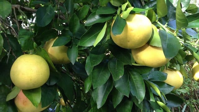| Coming on now in my garden are the abundant ruby grapefruits which are starting to get yellow with pink patches. |
