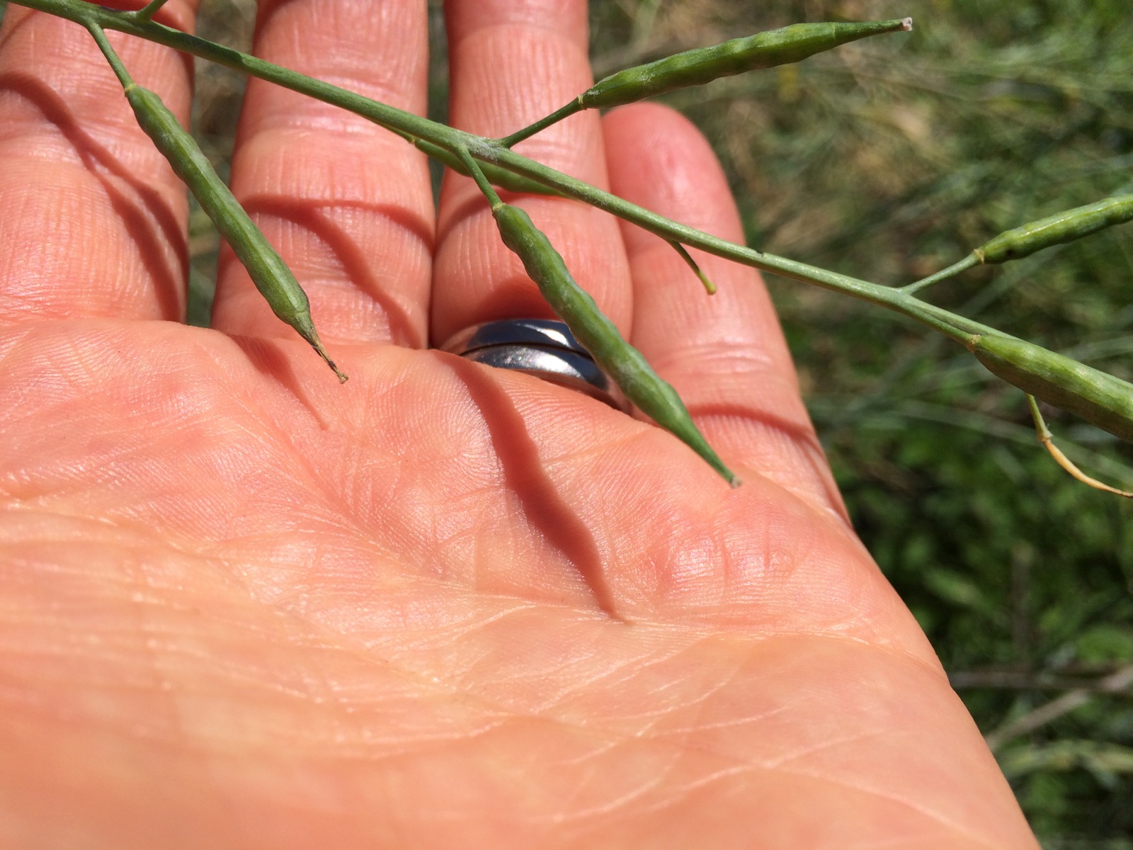 | Mustard spinach seedpods – almost ready to harvest. Nice and plump, just need to brown off. |