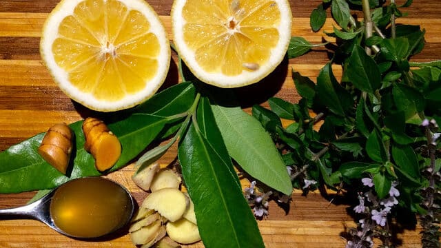 Some of my favourites that I grow just near my kitchen are lemonbalm, lemon myrtle, mints, pineapple sage and tulsi. To make the tea, you just grab a handful like that, stick it into a teapot, let it seep for a few minutes, and then drink. I also love adding fresh turmeric, mint and ginger too, if you’d like to add an extra zing of flavour.
