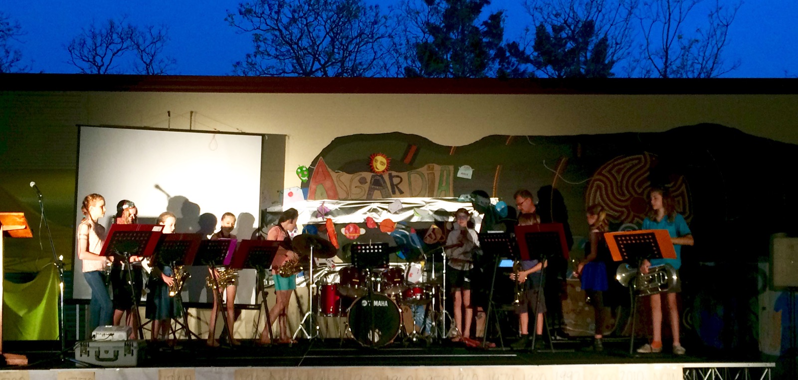 The kids play saxophone and trumpet in the senior concert band at the local primary school.