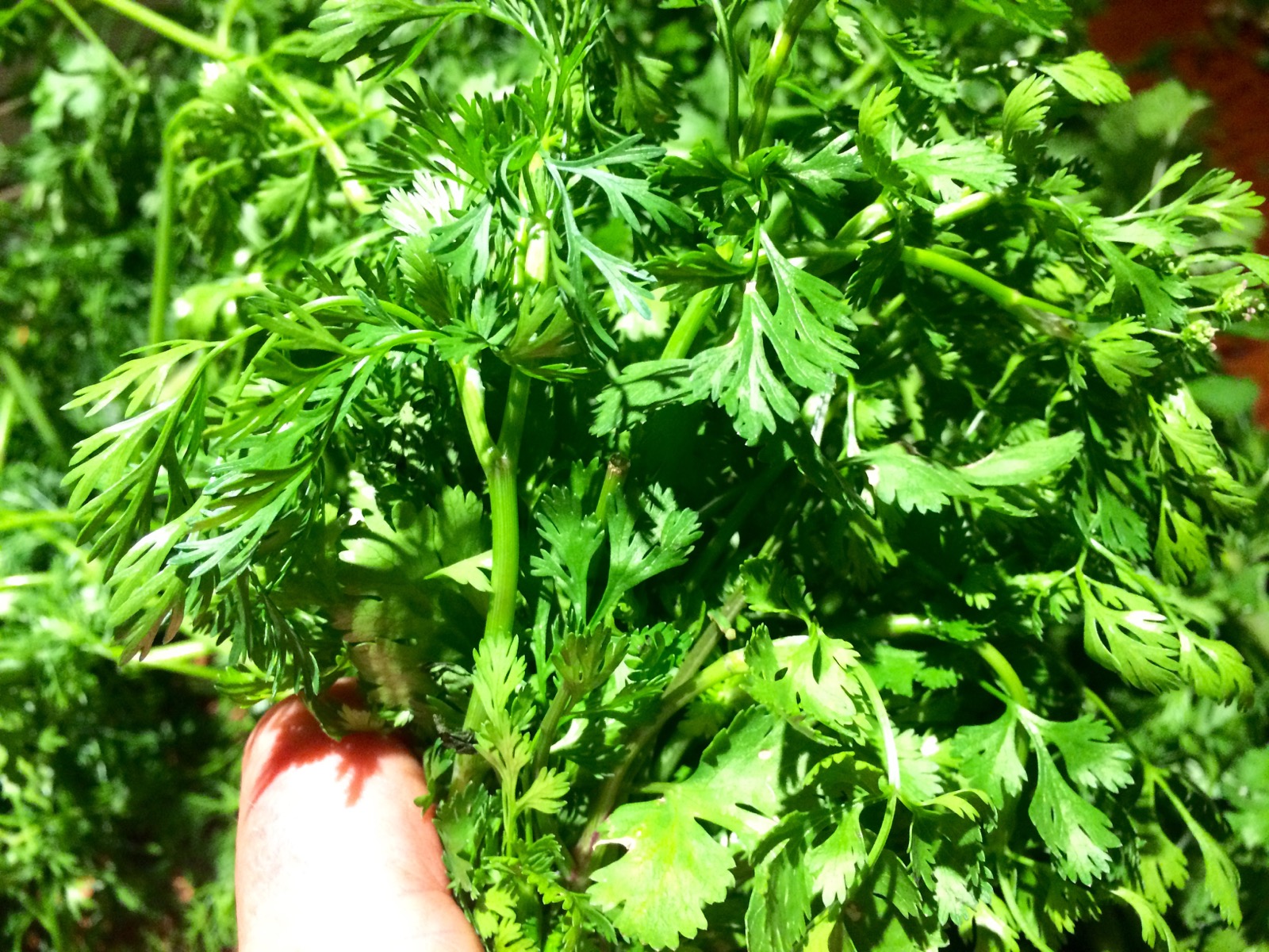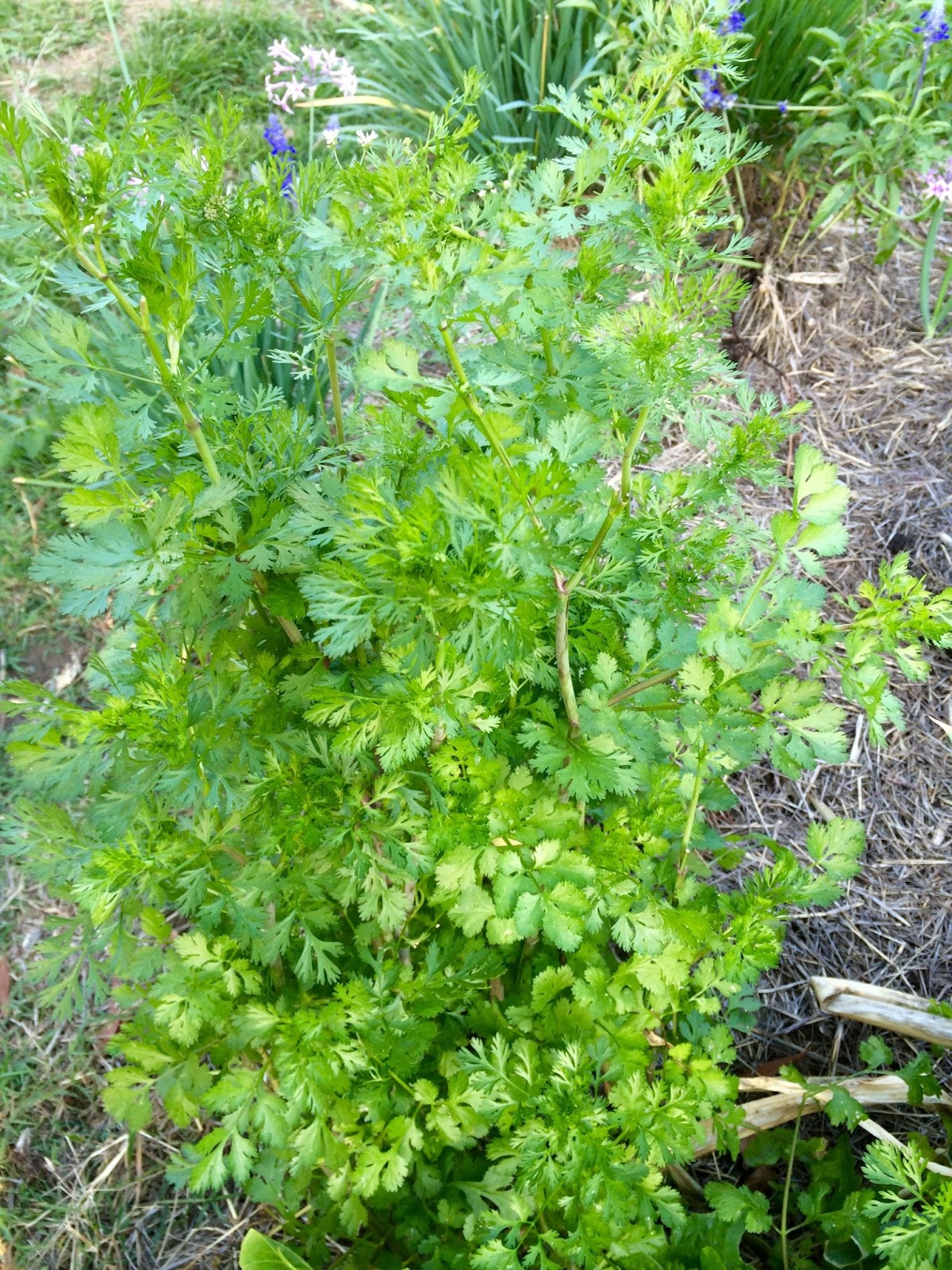 Cilantro just before it goes to flower becomes a quite big – lots of leafy matter to harvest.