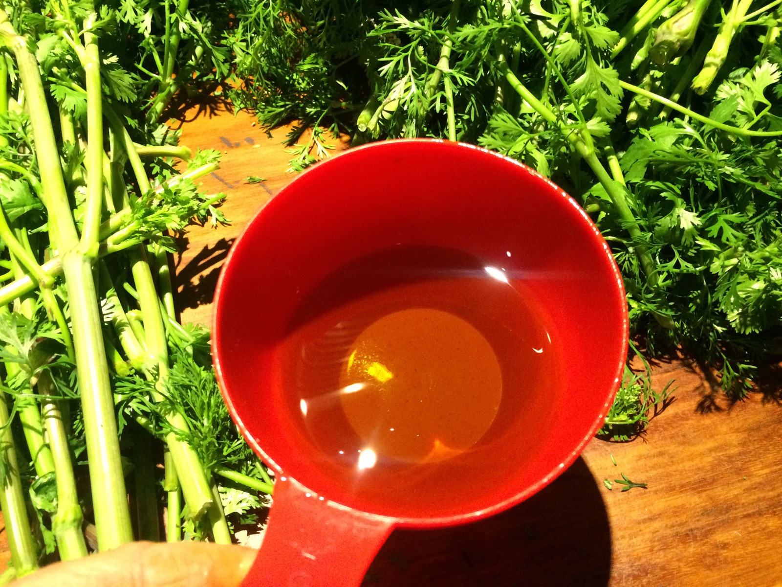 I've been bringing bunches of coriander into the kitchen as a cut flower… and I then surprised my neighbour, by chomping on my flower arrangement right out of the jar (that I use for a vase). It brings a really fresh scent into the house.