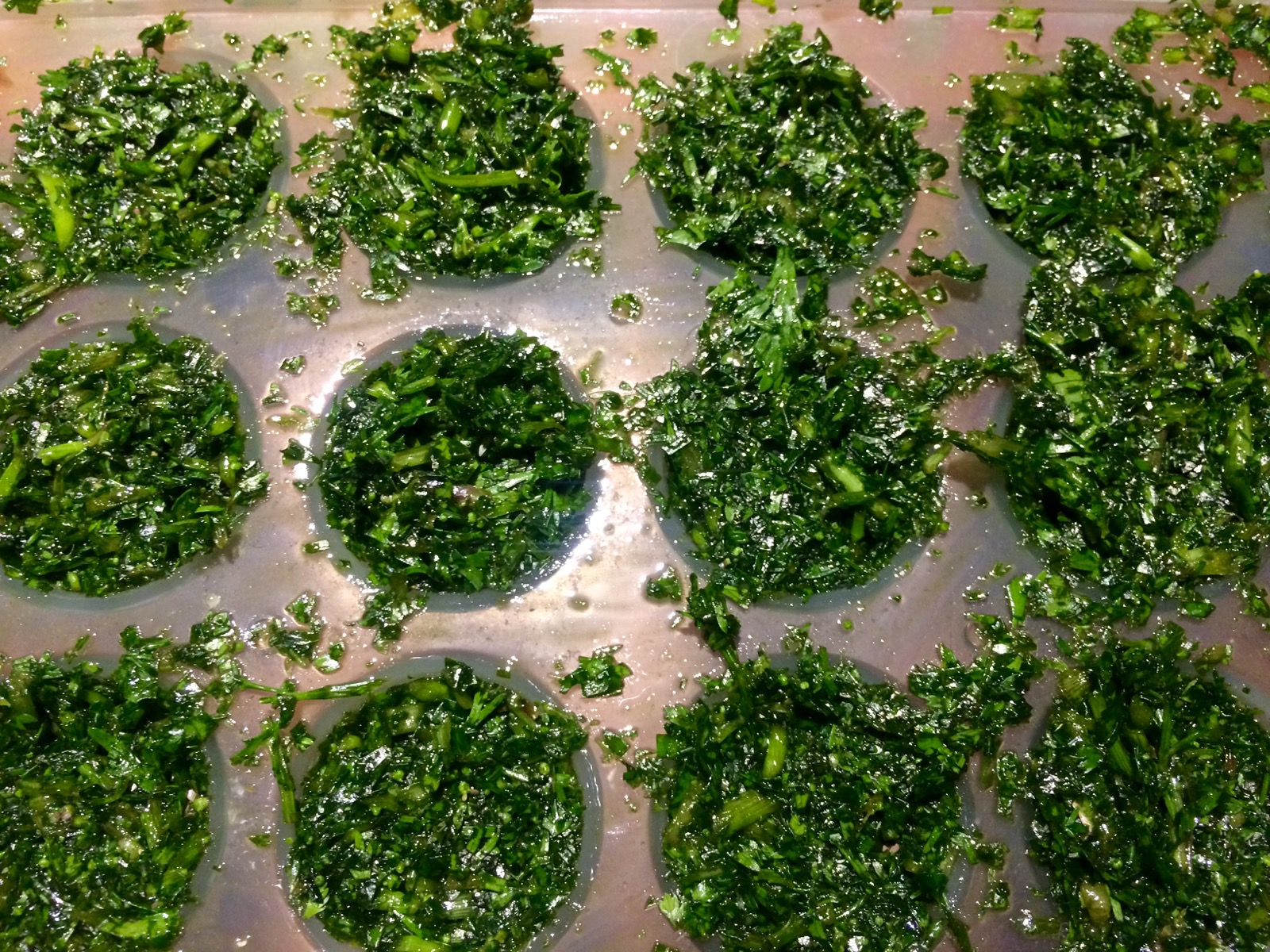 Cilantro/coriander paste – the same mix I used for making the frozen cilantro blocks. I covered this with a layer of olive oil, sealed with a lid and put it in the fridge. It should last a few weeks – by which time most of my plants would have completely gone to flower.