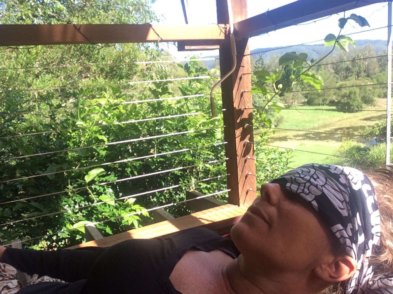 Lying down outside and breathing the fresh air deeply is soothing, but not where there is bright light . The light intensifies the pain (covering them helps). The kids have gone out for the morning rockclimbing so I have the hammock to myself (usually I get jumped on). I managed to lie down for a few moments this morning and enjoy the newly cool breeze and the gentle sound of birdsong.
