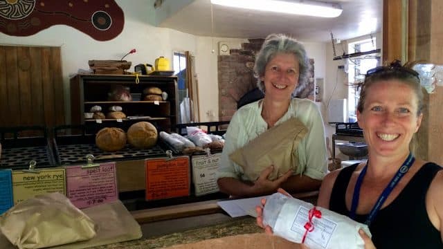 | At the Crystal Waters bakery this morning collecting our delicious organic sourdough bread and catching up with friends. |