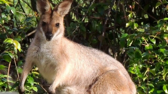 | This mummy wallaby has a gorgeous little joey who has just lunged into the pouch when I took out my camera. They live mostly around garden. I see them every day. |