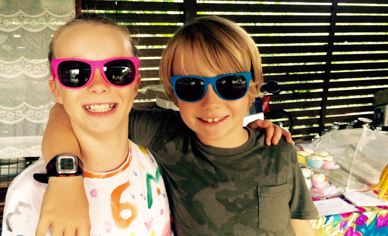 Maia and Hugh were absolutely delighted when one of the cafe customers brought them some sunglasses as a gift. |