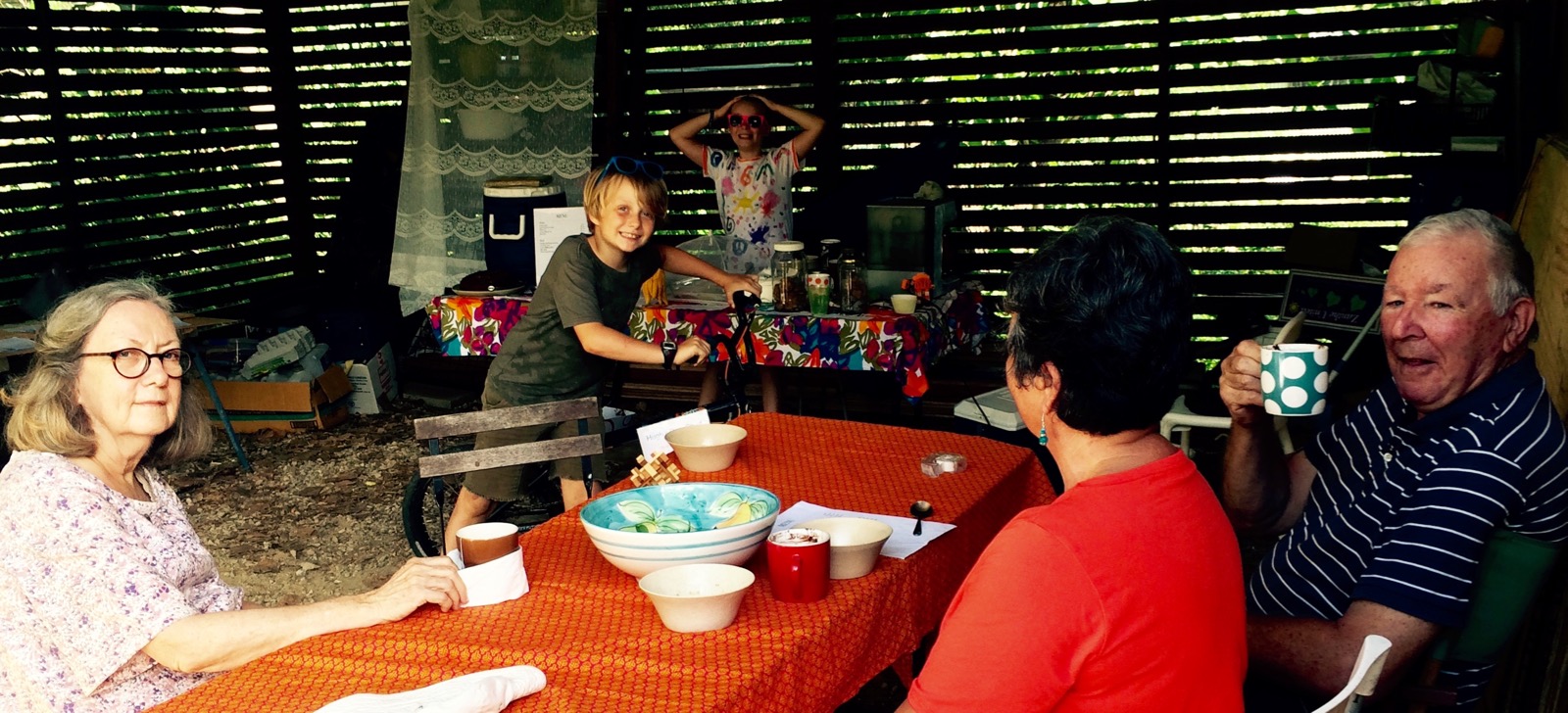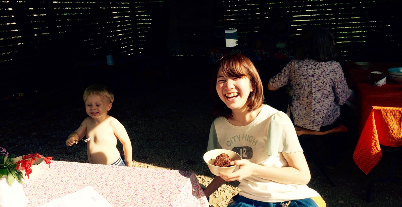 Our Japanese WWOOFer (Willing Worker on Organic Farms) has been a great help to Maia setting up, and enjoyed some of the chocolate cake while Monty delighted in a babycino. Over lunch, Rin offered Maia and Hugh a Japanese lesson. Each day she is teaching them new phrases and words. WWOOFers are so fabulous. |